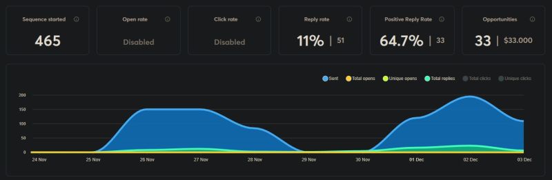 We launched a small AI-assisted cold email campaign for Guramo during the holiday slowdown, targeting 465 prospects and generating an 11% reply rate, 33 positive replies, and 25 meetings booked so far.